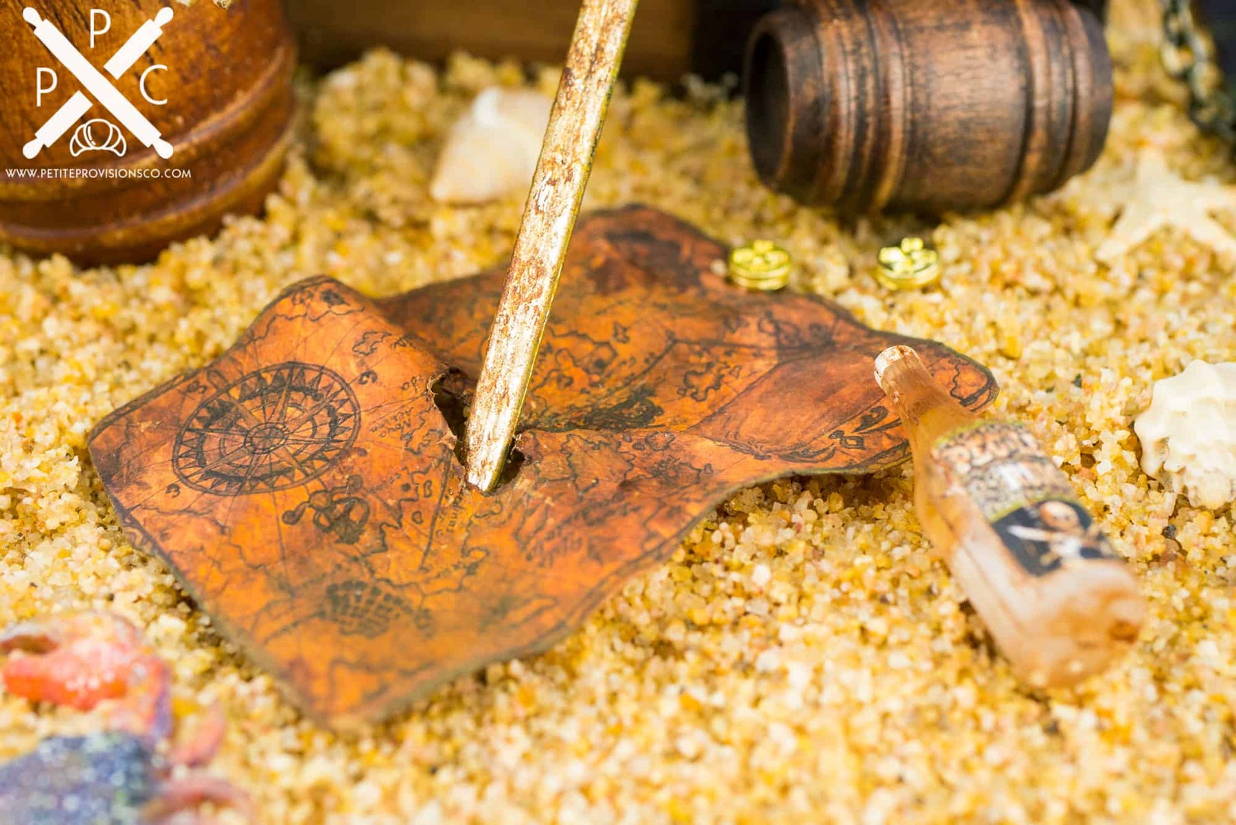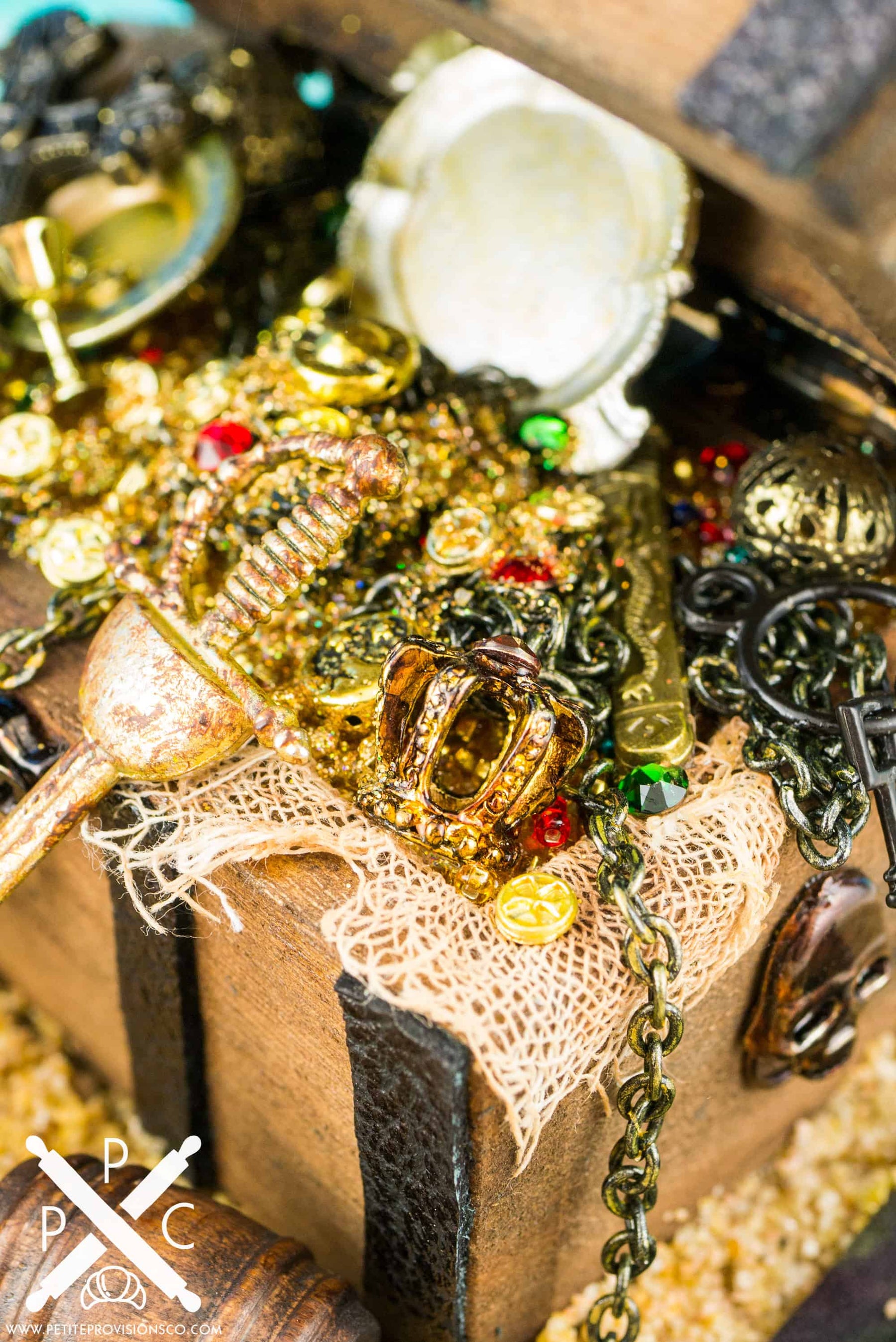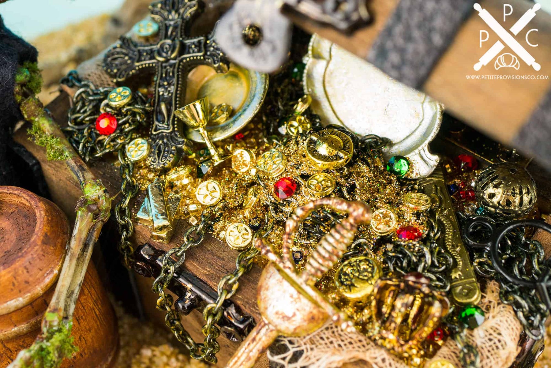 This project has been in the works for quite some time, and I’m so excited that it’s finally finished! Meet Selwyn Crowley… or what’s left of him. This swashbuckling pirate found his buried treasure, but it cost him his life. Now he’s destined to guard this chest in solitude, with only the sand and sea as companions.