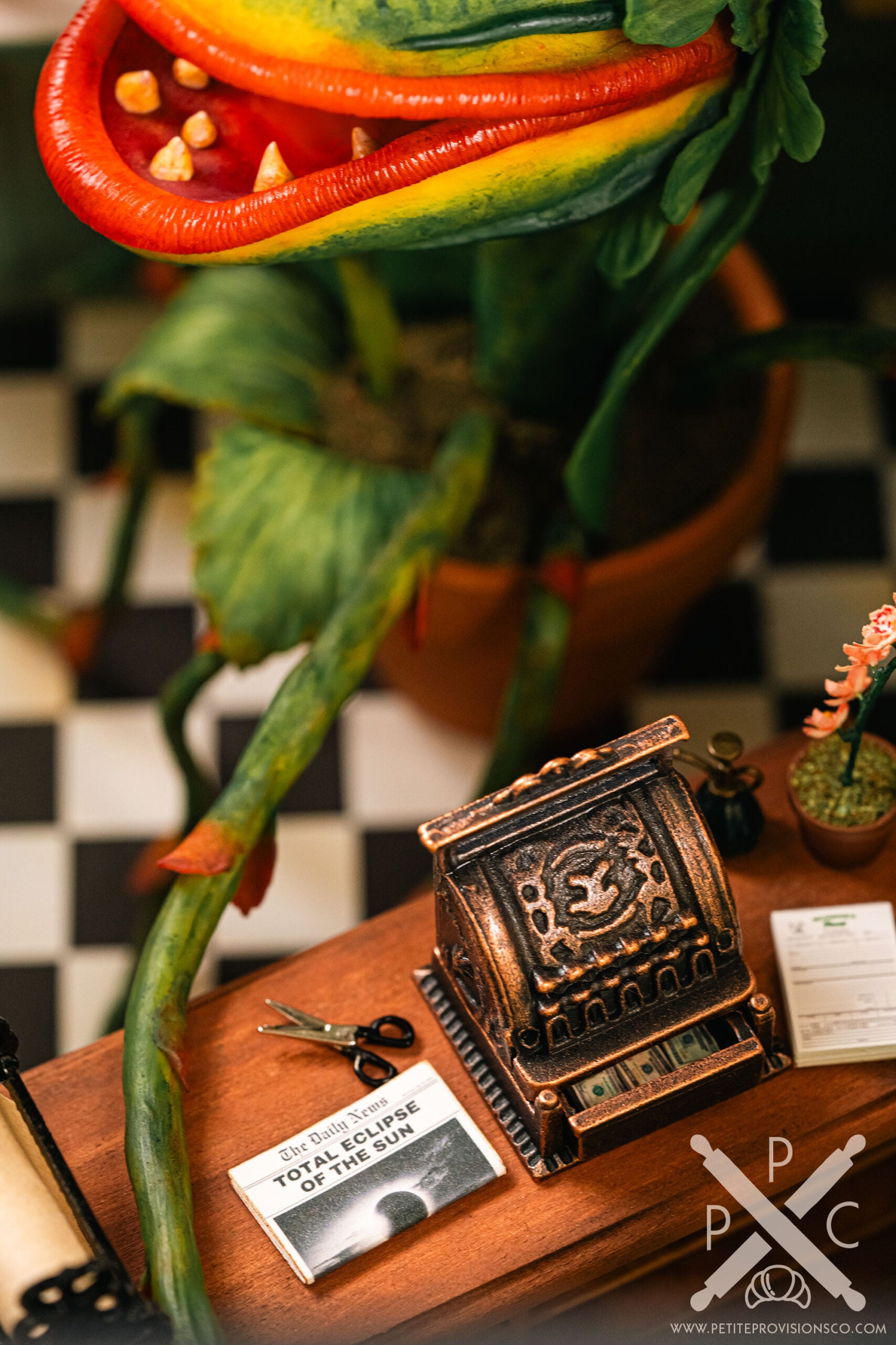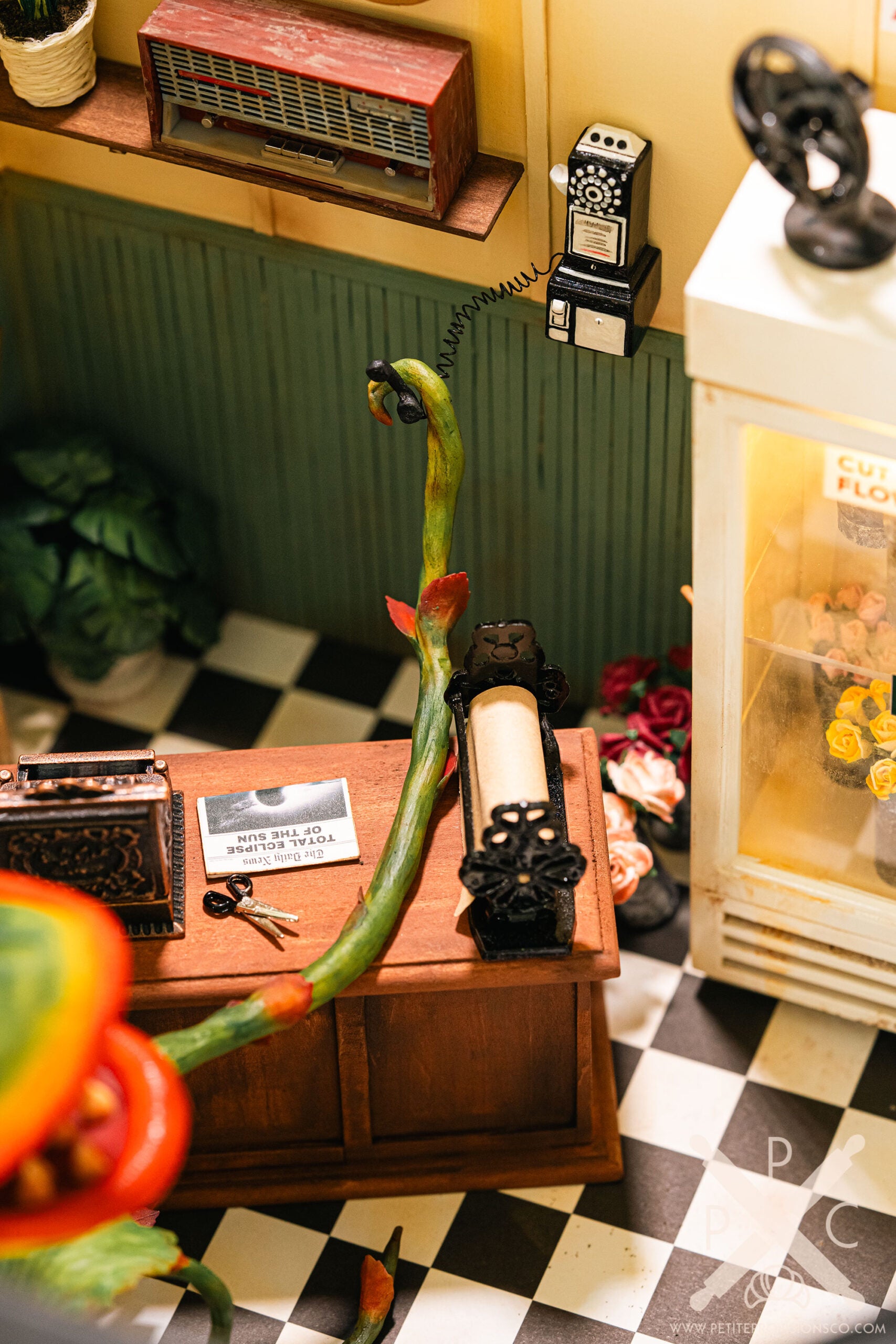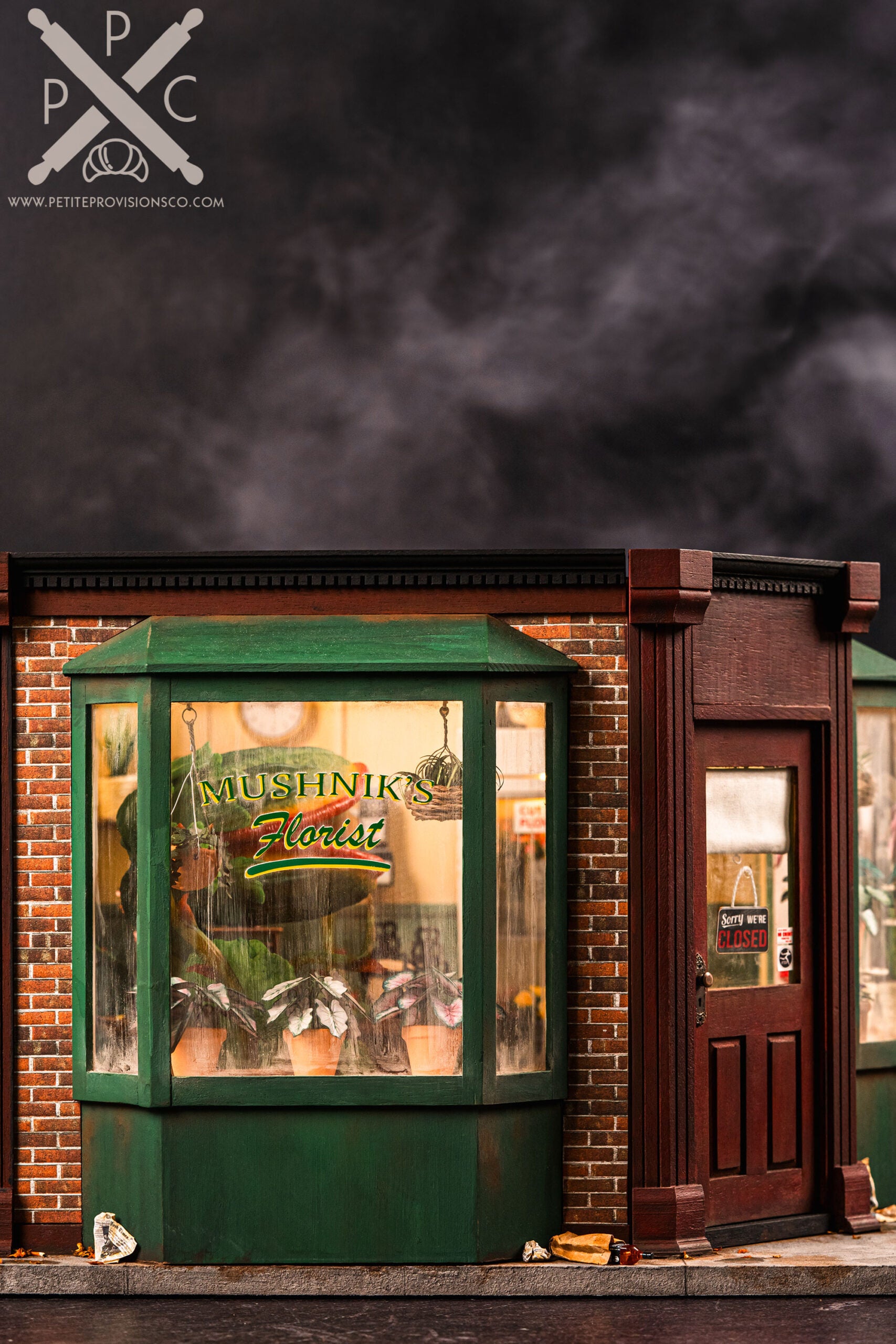 This year has been a difficult one on a personal level, and I found myself craving a project that felt both meaningful and deeply satisfying to work on. Revisiting this long-held idea felt like the perfect opportunity to finally check Audrey II and Mushnik’s off my miniature bucket list. There was something comforting about pouring my energy into a build I’ve imagined for so many years, and it reminded me why I fell in love with this craft in the first place.