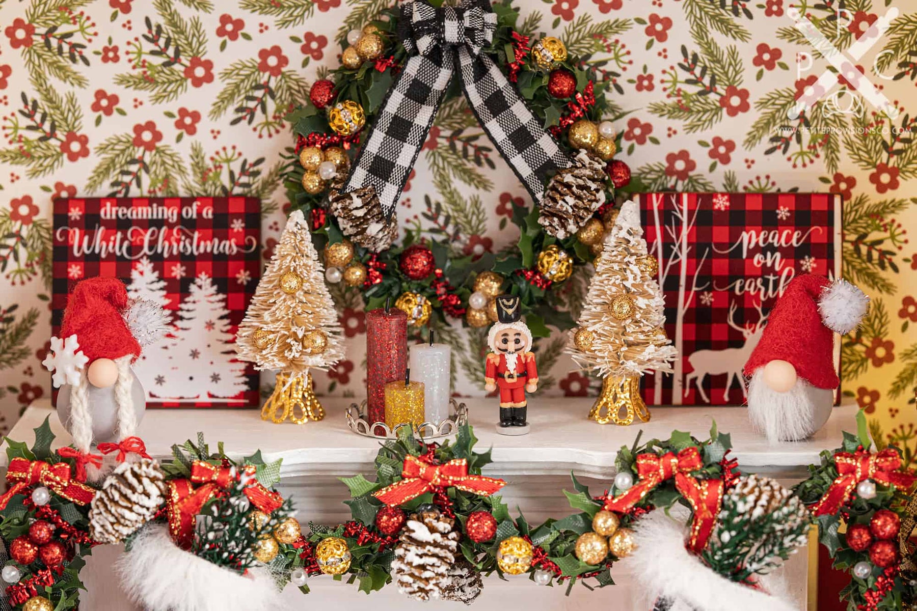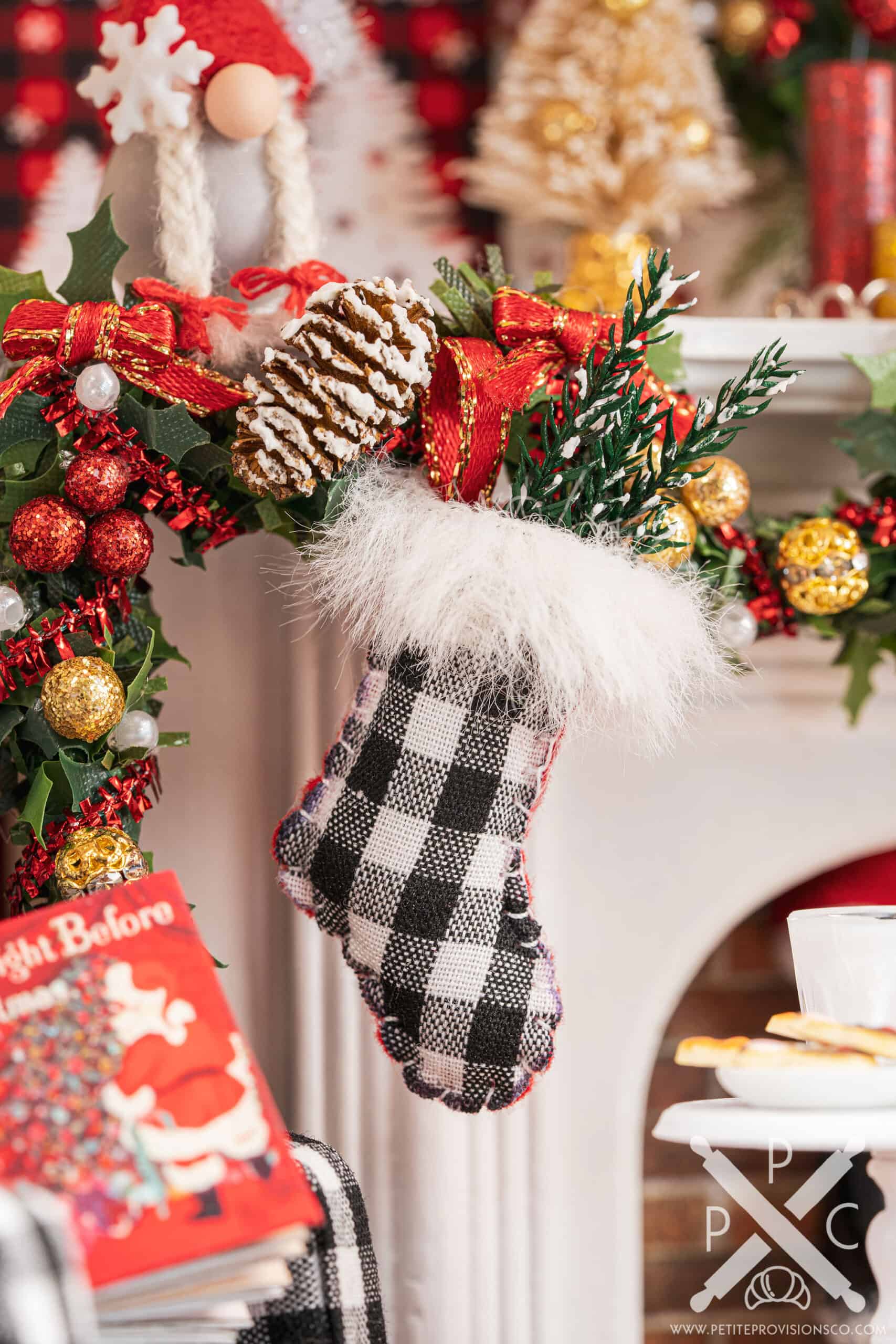 Saint Nick himself has just come down the chimney, and I can only hope he doesn’t track too much snow across the wood floors. The fireplace became a natural focal point, and I used the same decorative elements from the tree to create the wreath and garland along the mantle. Carrying those materials throughout the space helped everything feel cohesive and intentional.