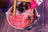 Laundry day gets a supernatural twist with the Bewitched Washboard. This rustic washboard rests inside a weathered basin, overflowing with enchanted pink bubbles that seem to shimmer with otherworldly energy. A cloth clings to the board while a bottle of Hex-tra Fresh Laundry Liquid magically hovers in midair, forever pouring its bubbling brew.
