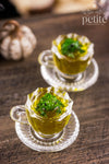Double, double, toil and trouble - this tea has a little extra hop! Each delicate glass teacup is filled with a greenish brew, but look closely and you’ll spot a tiny green toad peeking out from the surface.