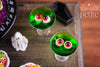 Add a gory garnish to your haunted happy hour with this Eyeball-tini! Served in a classic martini glass, this creepy cocktail features a vivid green gelatin “drink” with a pair of floating red-rimmed eyeballs staring back at you. Equal parts spooky and stylish, it’s a perfect centerpiece for your dollhouse bar cart, Halloween party, or mad scientist’s lab.