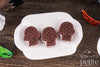 - 3 skull ice cream sandwiches on a ceramic platter