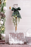 This charming winter snow shovel brings a touch of frosty magic to any dollhouse porch, entryway, or seasonal scene. Finished in a soft, weathered silver with a dusting of freshly fallen snow, the shovel is adorned with a cascade of frosted evergreens and fluffy snowberries tied off with a beautiful forest-green plaid bow.